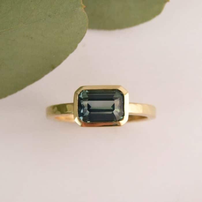 Octagon Teal Sapphire Ring
