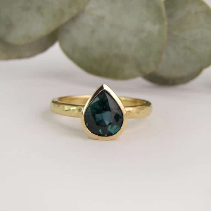 Pear Shape Teal Sapphire Ring